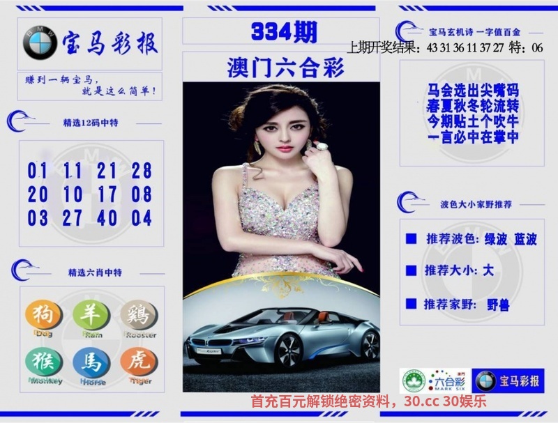 337期:七肖[龙虎鸡猴牛猪羊]开:鸡09准